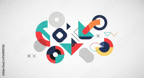 © Go69fi, Obraz premium Abstract geometric composition with circles triangles and lines on white