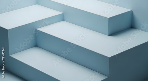 Obraz premium Abstract geometric composition with light blue cubes and steps