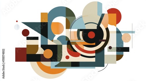 Fototapeta premium Abstract geometric composition with overlapping shapes in muted earth tones and teal.