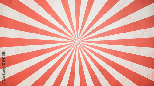 Fototapeta premium Abstract geometric composition with radiating white sunburst lines over coral background, soft diffused top-left lighting, balanced symmetry for clean modern editorial presentation