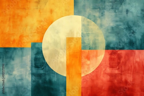 Naklejka premium Abstract geometric composition with vibrant colors and circular elements.