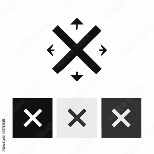 Obraz premium Abstract Geometric Cross Symbol with Directional Arrows and Variations