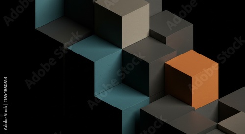Obraz premium Abstract Geometric Cube Composition: Dark Teal and Burnt Orange 3D Render