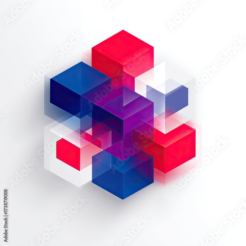 © Rayyan Studio, Fototapeta premium Abstract Geometric Cube Composition In Red, Blue, Purple And White