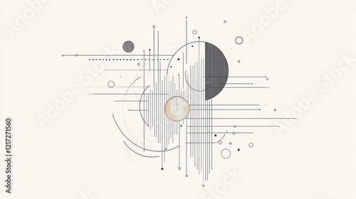 Obraz premium Abstract geometric design featuring circles and lines on a light background...