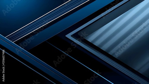 Fototapeta premium Abstract geometric design with dark blue tones, featuring diagonal lines, layered shapes, and a modern, minimalist aesthetic
