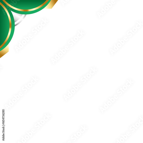© Hafidhulkarim60, Obraz premium Abstract geometric design with green and gold circles in the top left corner. Perfect for backgrounds, patterns, graphic design projects.