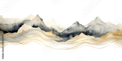 © Graphic Warrior, Obraz premium Abstract geometric drawing painting ink sketch golden brown mountains hills rocks on white background. Adventure explore