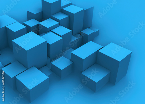 Obraz premium Abstract Geometric Figures in 3D: Modern Composition with Vibrant Colors on Blue Background, Contemporary Art