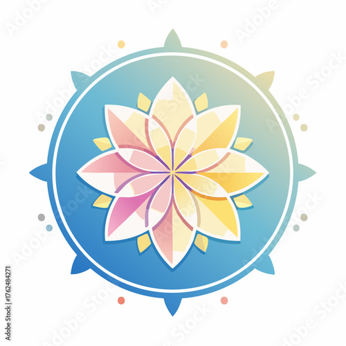 Fototapeta premium Abstract Geometric Floral Compass Design with Gradient Colors and Circular Blue Frame