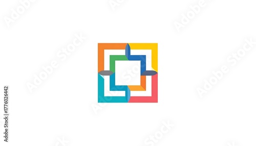 © Tri, Obraz premium Abstract geometric form a square with colorful, connected shapes around a central square void on a white background