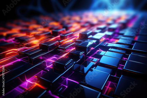 Obraz premium Abstract geometric futuristic fantasy background or neon illuminated poster