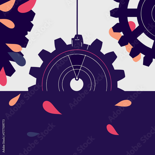 © Asiah, Fototapeta premium Abstract geometric gears in motion with colorful elements