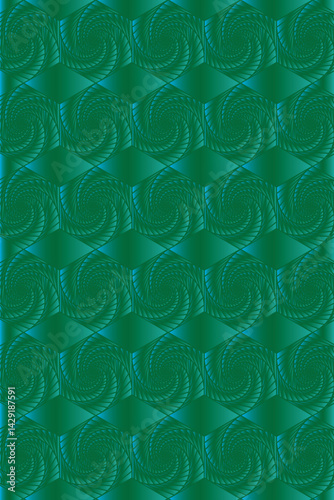 © HS 360, Fototapeta premium Abstract geometric green color seamless swirling circle pattern vector illustration design.