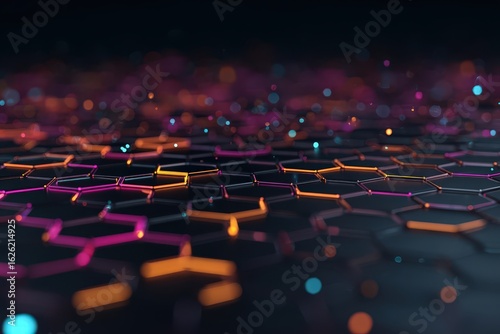 © Harsa, Obraz premium Abstract Geometric Hexagon Pattern With Glowing Colors