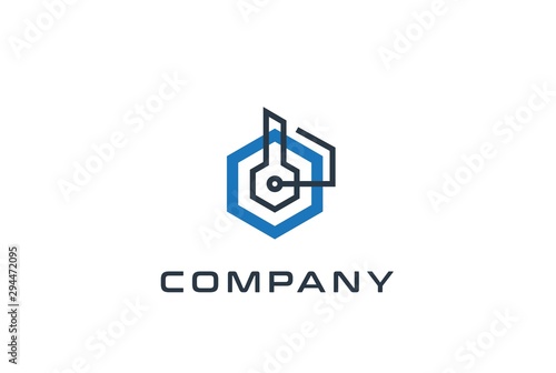 Fototapeta premium Abstract geometric hexagon technology logo design vector template with...
