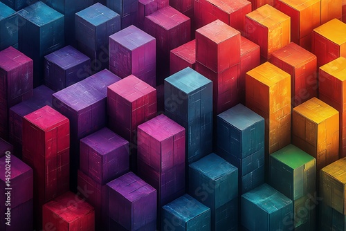 Obraz premium Abstract Geometric Landscape Of Textured Colorful Cubes Artistic Render