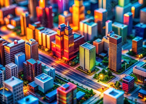 © Nopparat, Obraz premium Abstract Geometric Lines, Miniature Tilt-Shift Cityscape, Modern Design Background