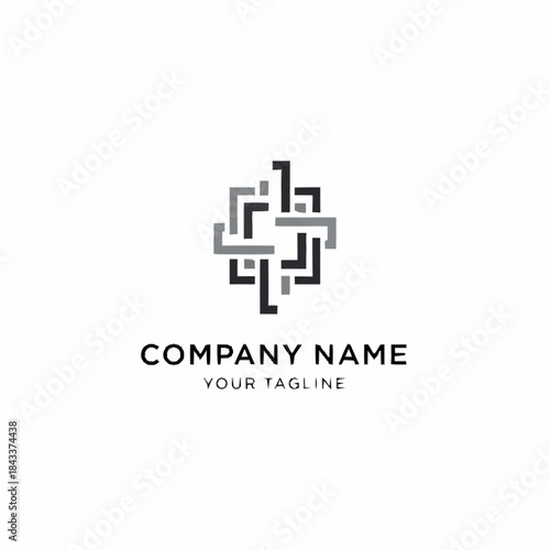© Lerr, Obraz premium Abstract geometric logo design with interconnected lines forming a square shape.