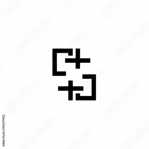 © Joi, Fototapeta premium Abstract geometric logo with two stylized plus signs in a square frame.