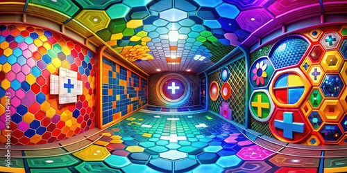 © Danicha, Obraz premium Abstract Geometric Medical Background with Shapes and Patterns for Health and Science Projects