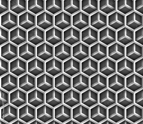Fototapeta premium Abstract geometric metal hexagon seamless pattern background. Vector...