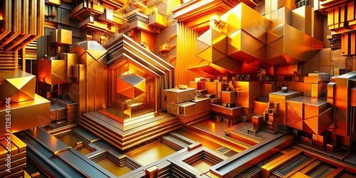 Fototapeta premium Abstract Geometric Orange Yellow Shapes - Dynamic Design