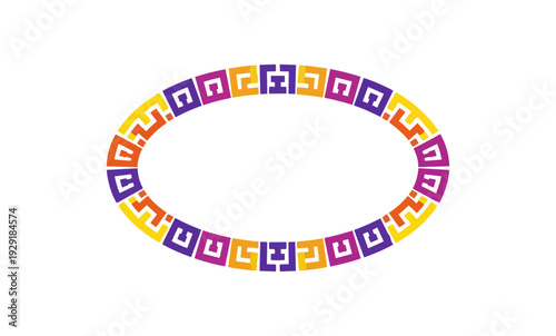 Obraz premium Abstract geometric oval ring with colorful patterns on black background