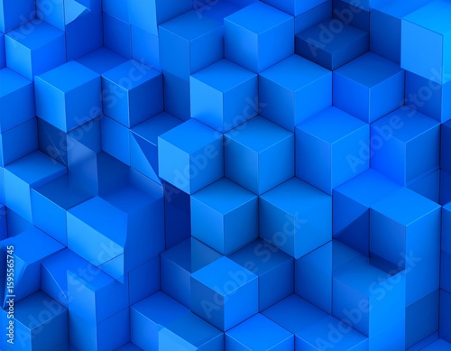 © Santri, Obraz premium Abstract geometric pattern of interlocking blue cubes