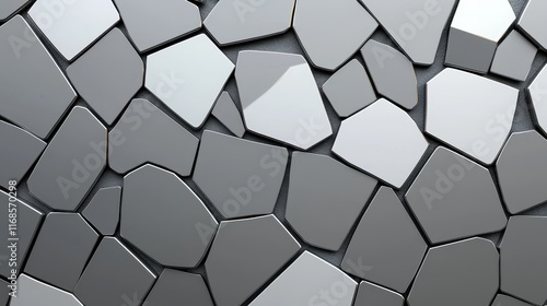 © Raitalinn, Naklejka premium Abstract Geometric Pattern of Irregular Gray and Silver Shapes on a Smooth Surface