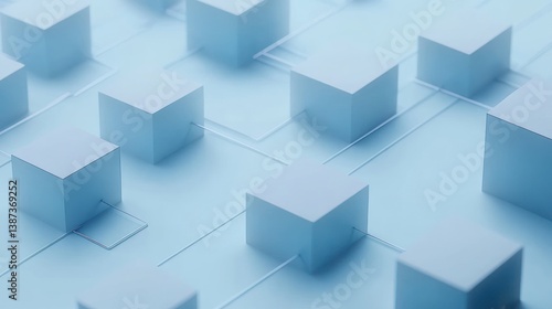 © ronal, Obraz premium Abstract geometric pattern of light blue cubes interconnected. Possible use for background images in digital design or product design