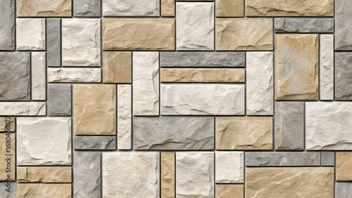 © sukumar, Obraz premium Abstract geometric pattern of textured stone blocks in earthy tones