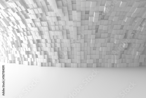 Fototapeta premium Abstract geometric pattern of white cubic tiles in a modern architectural space. 3d render.