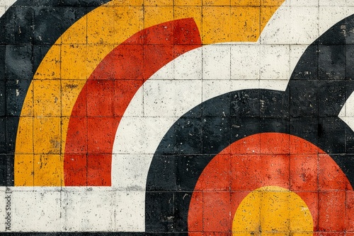 Naklejka premium Abstract Geometric Pattern Painted on a Tile Wall