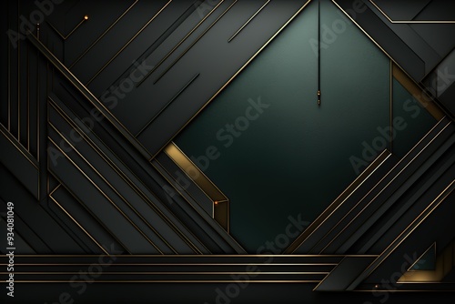 © tracerkamu, Obraz premium Abstract geometric pattern with black and gold elements.
