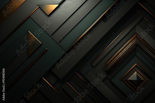 © tracerkamu, Fototapeta premium Abstract geometric pattern with black and gold squares and lines.