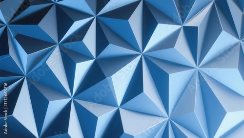 © meng, Obraz premium Abstract geometric pattern with blue triangular facets creating a three-dimensional effect