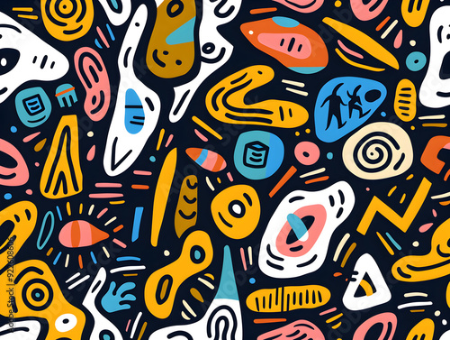 © Umar, Obraz premium Abstract Geometric Pattern with Bold Colors and Tribal-Inspired Shapes for Contemporary Design Projects