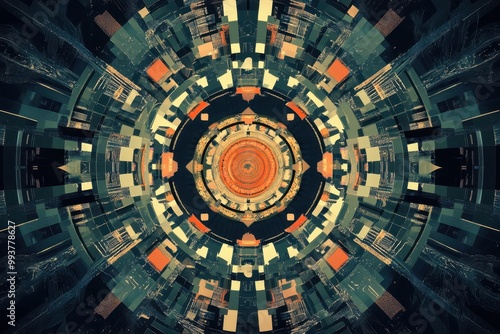 Fototapeta premium Abstract Geometric Pattern with Centered Circle and Orange, Beige, and Green Colors