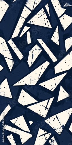 Fototapeta premium Abstract geometric pattern with contrasting navy and off-white shards.