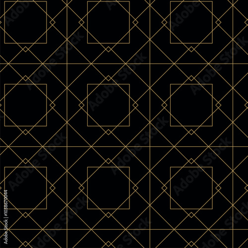 © Anastasiia, Fototapeta premium Abstract geometric pattern with crosses, stripes, lines. Seamless vector background. Black and gold ornament. Modern reticulated graphic design.