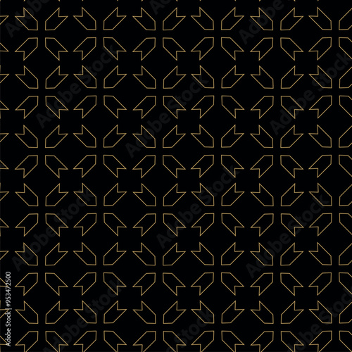 © Anastasiia, Fototapeta premium Abstract geometric pattern with crosses, stripes, lines. Seamless vector background. Black and gold ornament. Modern reticulated graphic design.