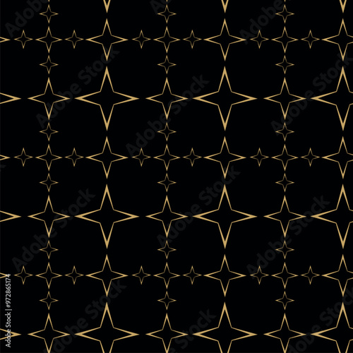 © Anastasiia, Fototapeta premium Abstract geometric pattern with crosses, stripes, lines. Seamless vector background. Black and gold ornament. Modern reticulated graphic design.