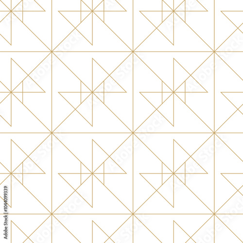 © Anastasiia, Fototapeta premium Abstract geometric pattern with crosses, stripes, lines. Seamless vector background. White and gold ornament. Modern reticulated graphic design.