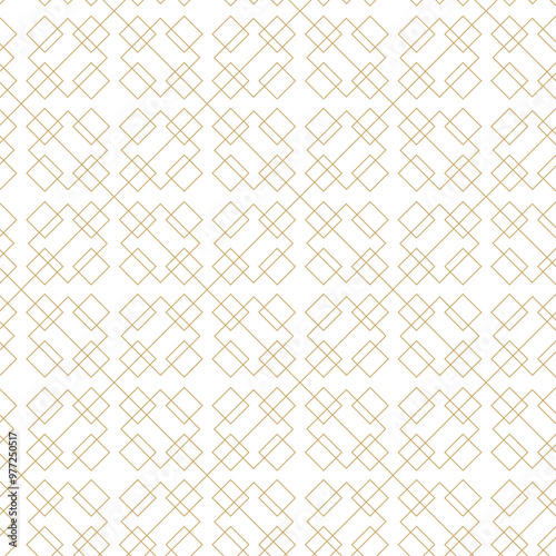 © Anastasiia, Naklejka premium Abstract geometric pattern with crosses, stripes, lines. Seamless vector background. White and gold ornament. Modern reticulated graphic design.