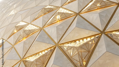Fototapeta premium Abstract Geometric Pattern with Gold Accents and Subtle Lighting
