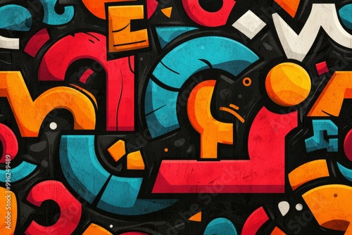 © Outkast, Obraz premium Abstract Geometric Pattern with Vibrant Colors and Grunge Texture