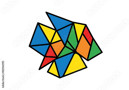 Obraz premium Abstract geometric pattern with vibrant, interconnected triangles forming a complex, dynamic, and intricate modern design element