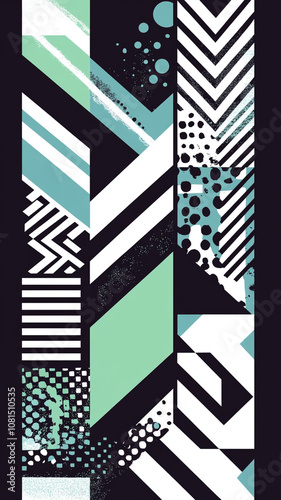© mingnimit, Obraz premium Abstract geometric patterns in green and blue create vibrant visual experience