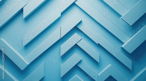 © Theeranan, Fototapeta premium Abstract Geometric Patterns in Shades of Blue with Three-Dimensional Arrows and Angled Shapes for Modern Design and Background Use